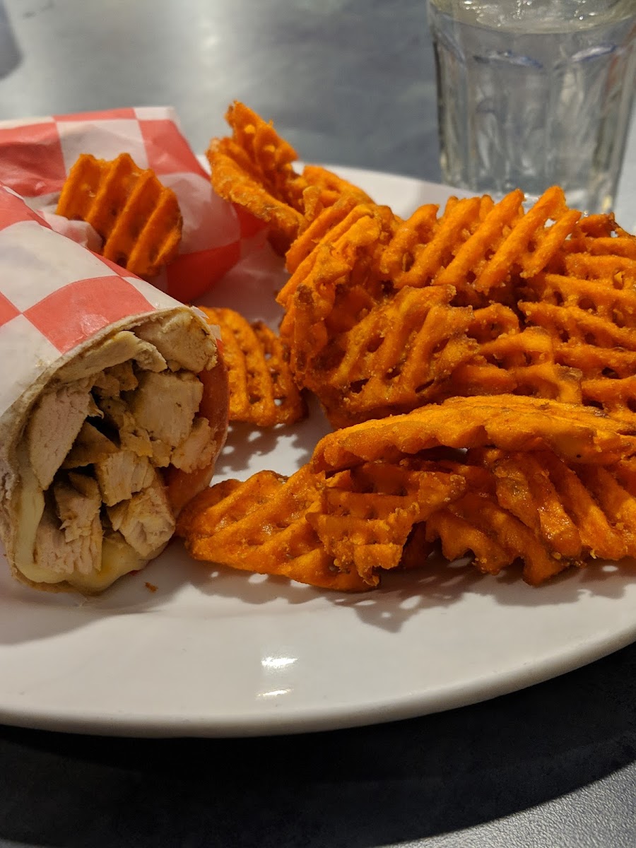 Combination of Corn Beef and Pastrami with Sweet Potato Frys
